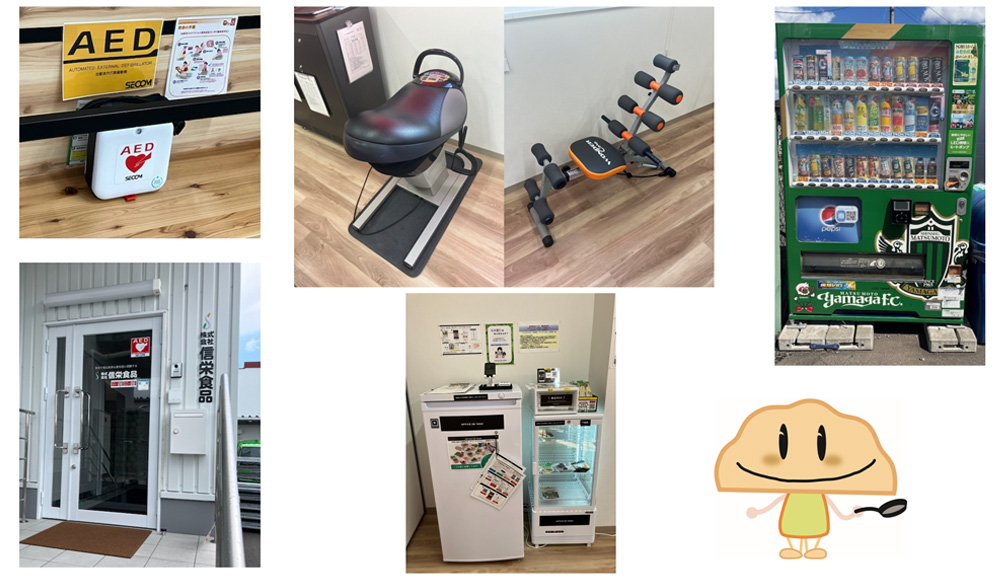 AEDの設置、健康運動器具の設置、置き型社食の導入、自販機への特保飲料のラインナップ