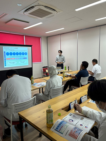 健康経営セミナーでは、セミナー受講の他、社長と社員のタウンホールミーティングもおこなわれ、健康課題や関心事、生活習慣などについて話し合いがおこなわれ、課題共有、意見をすいあげる機会となりました。